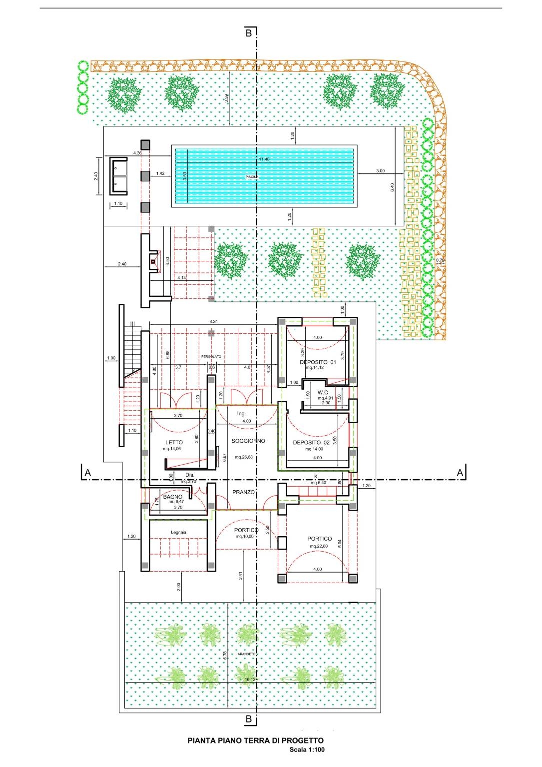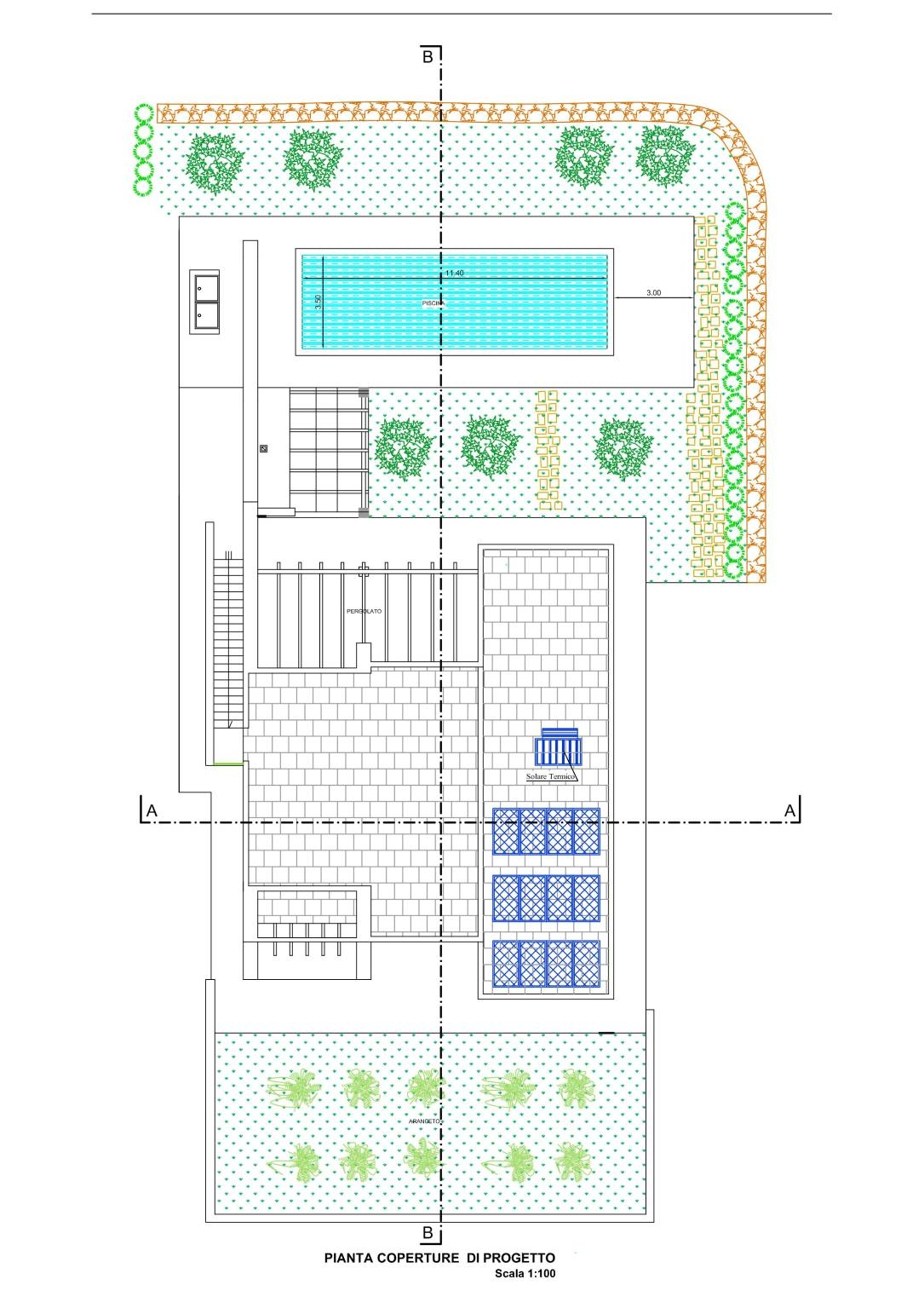 Per completare il totale godimento del paesaggio circostante e il clima del mare adriatico è prevista la realizzazione di una piscina di circa mq. 40,00 con annesso piazzale e pergolato attrezzato con zona barbecue e cucina esterna per organizzare piacevoli serate all'aperto.