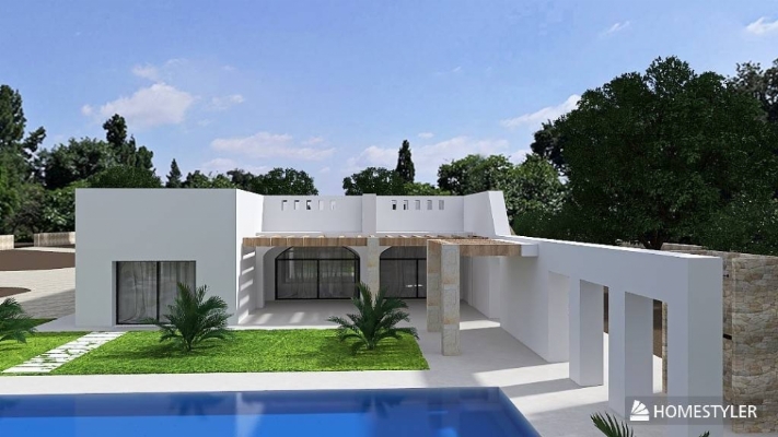 Il progetto già approvato dal Comune di San Vito dei Normanni prevede la costruzione di una nuova residenza rurale di circa mq. 110,0, con volte in tufo, tipica della tradizione locale, composta da un soggiorno-Pranzo con annessa zona cottura dal quale attraverso ampie vetrate si affaccia sulle due corti interne e la piscina, n. 1 camere da Letto con bagno en suite, e altre due camere con accesso autonomo con bagno annesso a un piccolo disimpegno.