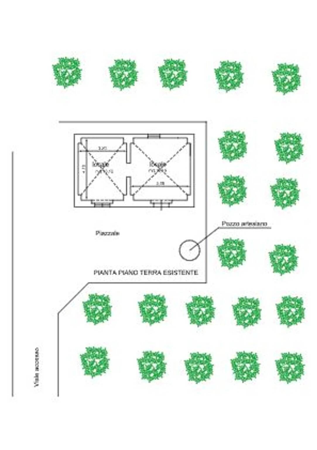 Sul terreno, totalmente recintato con viale di accesso da strada Comunale, sono presenti diversi alberi di ulivo con impianto di irrigazione e pozzo artesiano esteso sull'intera proprietà.