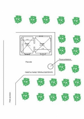 Il fabbricato esistente è attualmente adibito a deposito ed è composto da due vani di circa mq. 20,00 ciscuno che con una ristrutturazione può essere trasformato in residenza e ampliato.